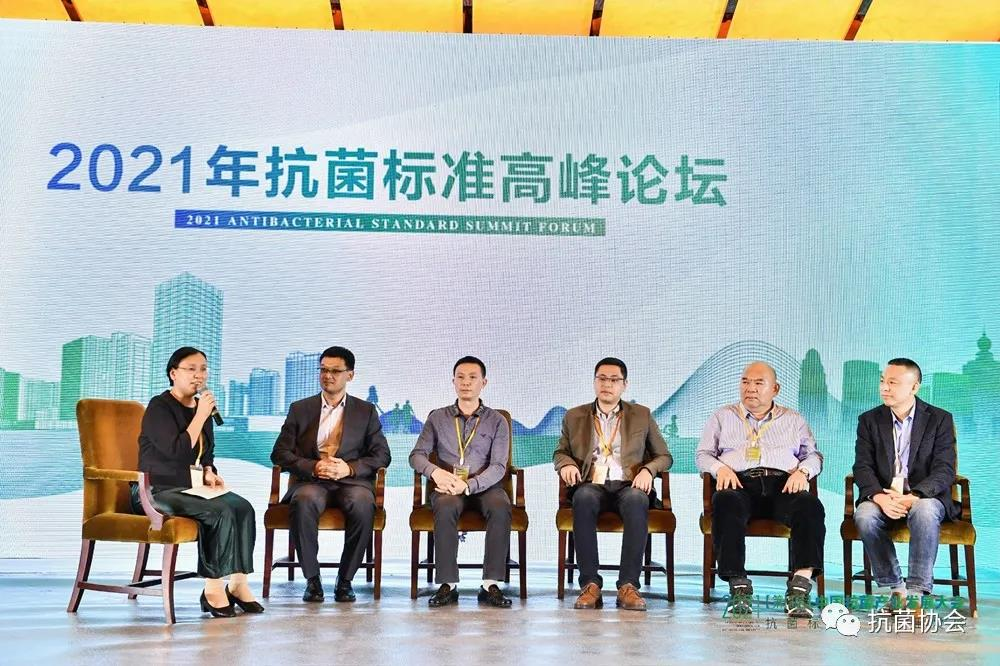 大会的高峰论坛环节,孙廷丽以“抗菌标准”作为主题,与广东恒洁卫浴有限公司高级研发副总裁毕大岩、惠州五和实业有限公司副总经理王帆、上海兴诺康纶纤维科技股份有限公司副总经理张复全、河南舒莱卫生用品有限公司副总经理赵华伟、同曦集团有限公司高级副总监张力展开了一场精彩对话,企业领导讲述了他们对标准的理解以及企业在标准制定方面所做的工作和取得的成效。