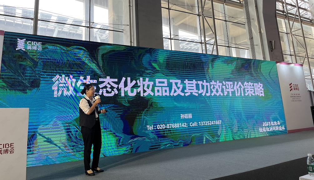 3月11日,为全面展示化妆品检验检测技术及其仪器装备的最近技术进展,由CIBE中国国际美博会与广东省功能化妆品工程技术研究中心联合主办的2023化妆品检验检测创新论坛于广州·广交会展馆1.1馆H13成功举办。在论坛上,孙廷丽高级工程师做了主题为“微生态化妆品及其功效评价策略”的演讲,她以皮肤微生态和皮肤健康为切入点,基于微生态概念的化妆品及原料进行讲解分析,深入浅出地介绍益生菌、益生元、后生元三者的异同,并针对微生态概念的化妆品及原料的功效评价策略进行了介绍,受到了参会企业的广泛认可。