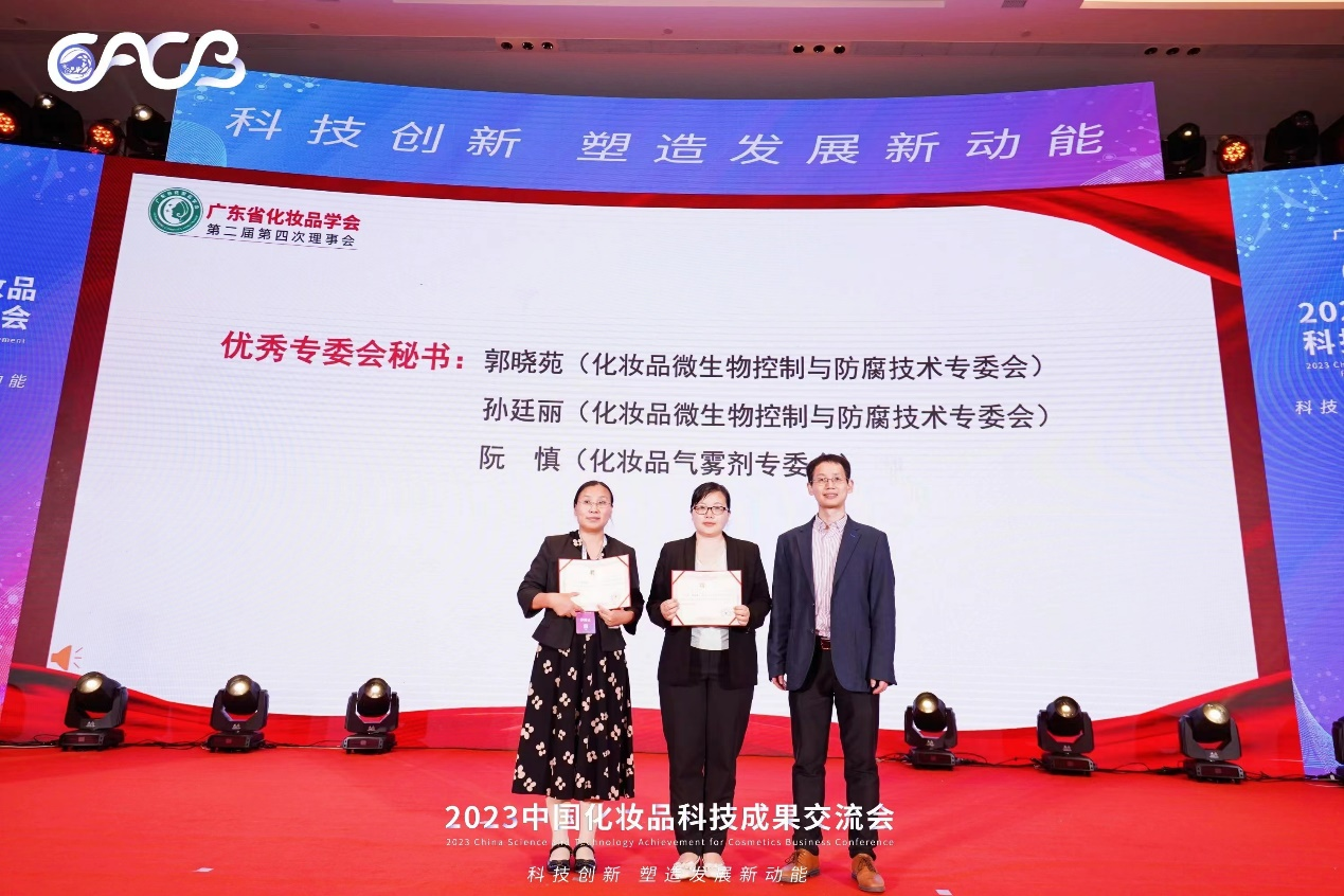 近年来,随着经济的快速开展和消费水平的不断提高,化妆品已成为人们日常生活的必需品,化妆品中微生物的有效控制是化妆品质量安全的重要保证,是化妆品企业不容忽视的问题,在科技成果研讨会上,我单位的成果“化妆品微生物危害控制关键技术及其应用”取得“创新成果奖”,谢小保主任荣获“中国化妆品行业大师杰出成就奖”,郭晓苑和孙廷丽高级工程师取得“优秀专委会秘书”称号,这些荣誉是化妆品学会及广大化妆品企业对我们的肯定和认可,极大地鼓舞了我们在化妆品微生物控制领域做出更大更优秀的成果的信心和决心。